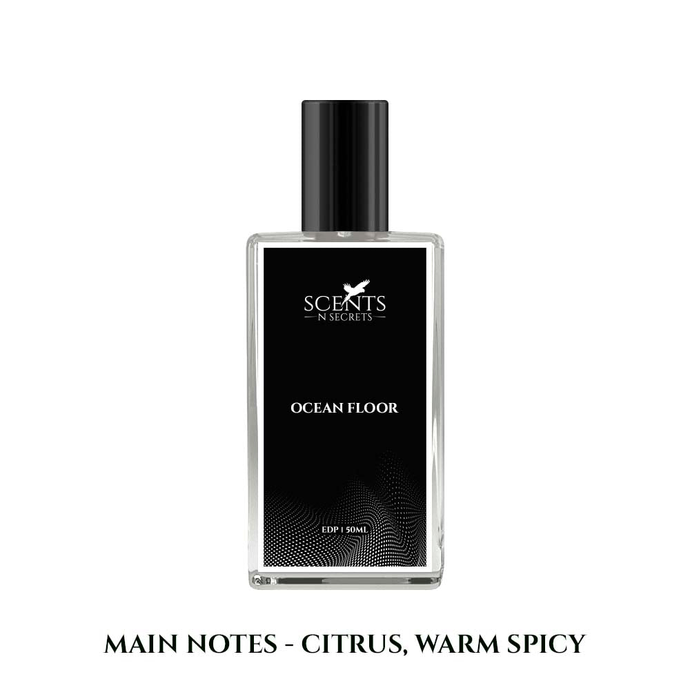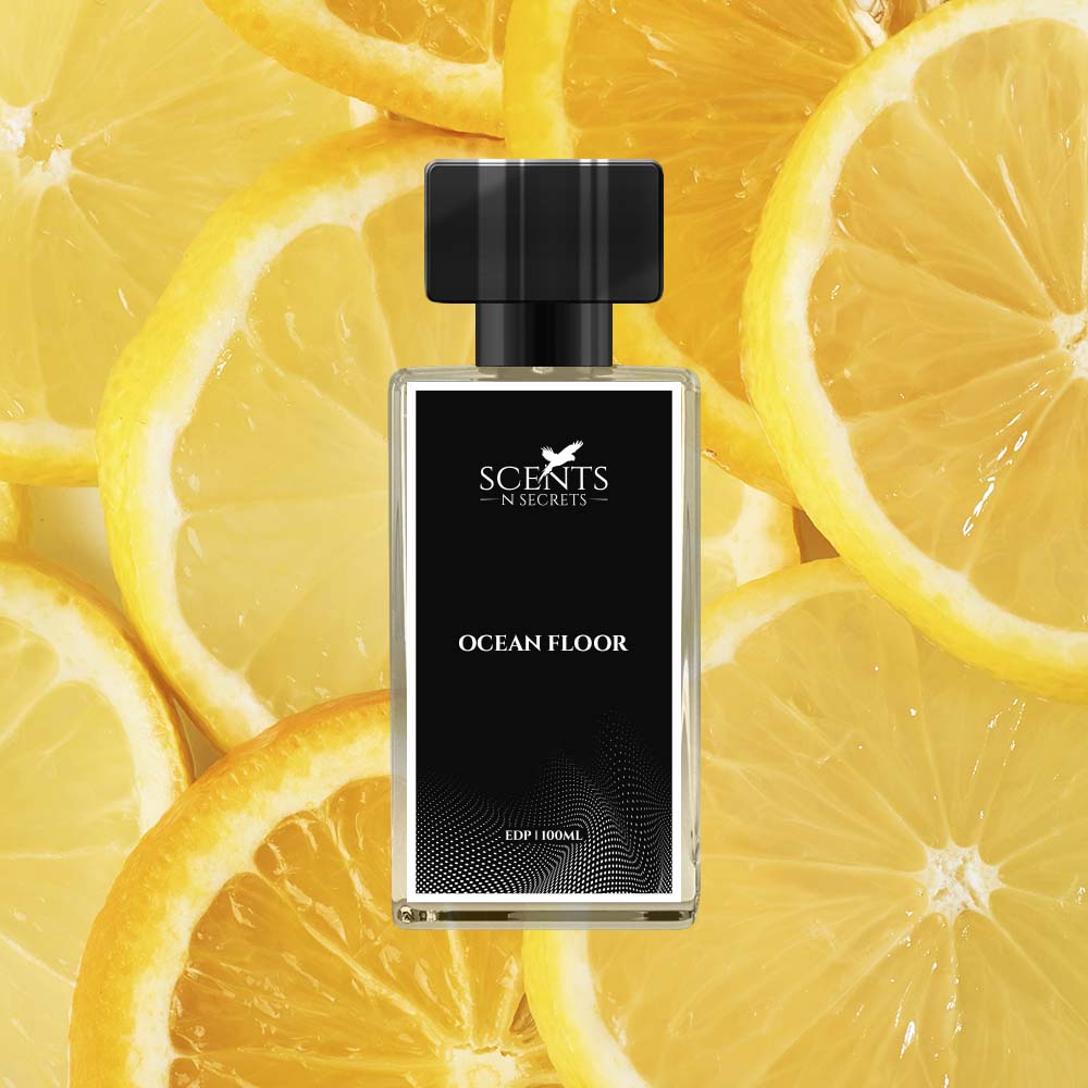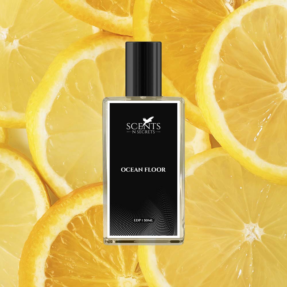 Showcasing "Ocean Floor" the extraordinary perfume that takes you on a thrilling adventure into the ocean's depths. Scents and Secrets’ Ocean Floor offers a captivating scent that blends the appealing qualities of citrus, and the warmth of woody and spicy perfume. It was influenced by the elegant and versatile scent of Bleu de Chanel.